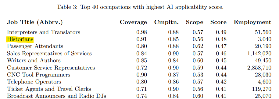 If you're retired or have some spare time to do some reading, Microsoft Research released a 41-page "Working with AI: Measuring the Occupational Implications of Generative AI" in July which highlighted the occupations that AI is likely to be applicable to โ replace? โ and check out which one of those is second on the list: