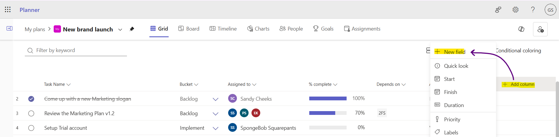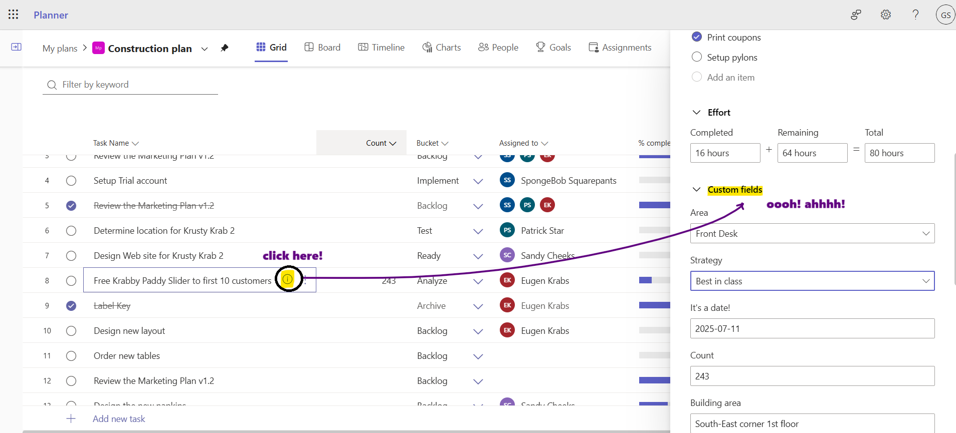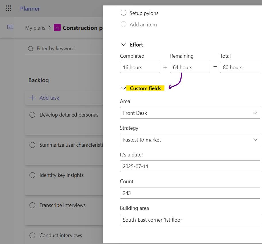 Microsoft Planner's Custom Fields of Dreams