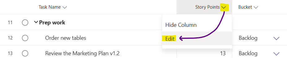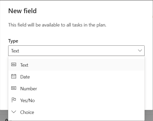 A custom field is similar to a column that you add in an Excel spreadsheet and allows you to store business-specific information on tasks in your plans. Just like Excel's Data validation feature, in Planner premium plans you can control the data entered by specifying what type it is.