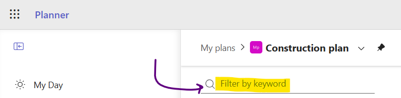 Microsoft did a smart thing and when you search with the "Filter by keyword" field just underneath your Plan's name, Planner searches the custom Text fields too! 🥰