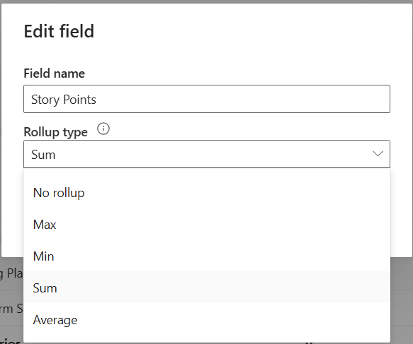 This dialog is displayed where you can choose a "Rollup type"