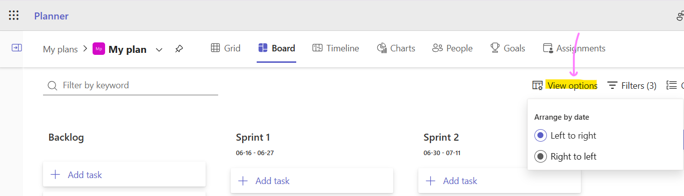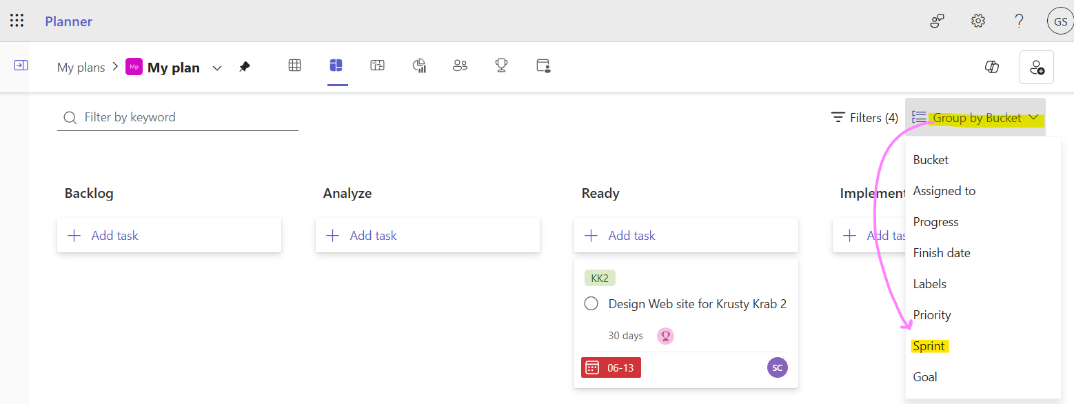 Sprints in Microsoft Planner, a false start